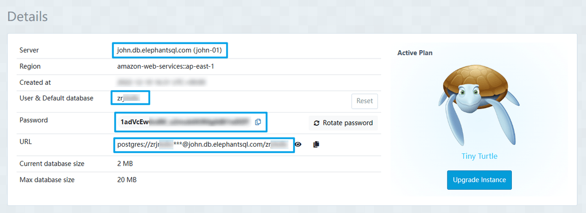 | DB_HOST | queenie.db.elephantsql.com | Server | 数据库地址 |