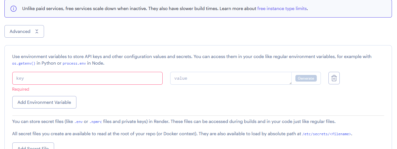 下一步先随便取个名字,然后拉到底部点击 Advanced,录入需要的环境变量。