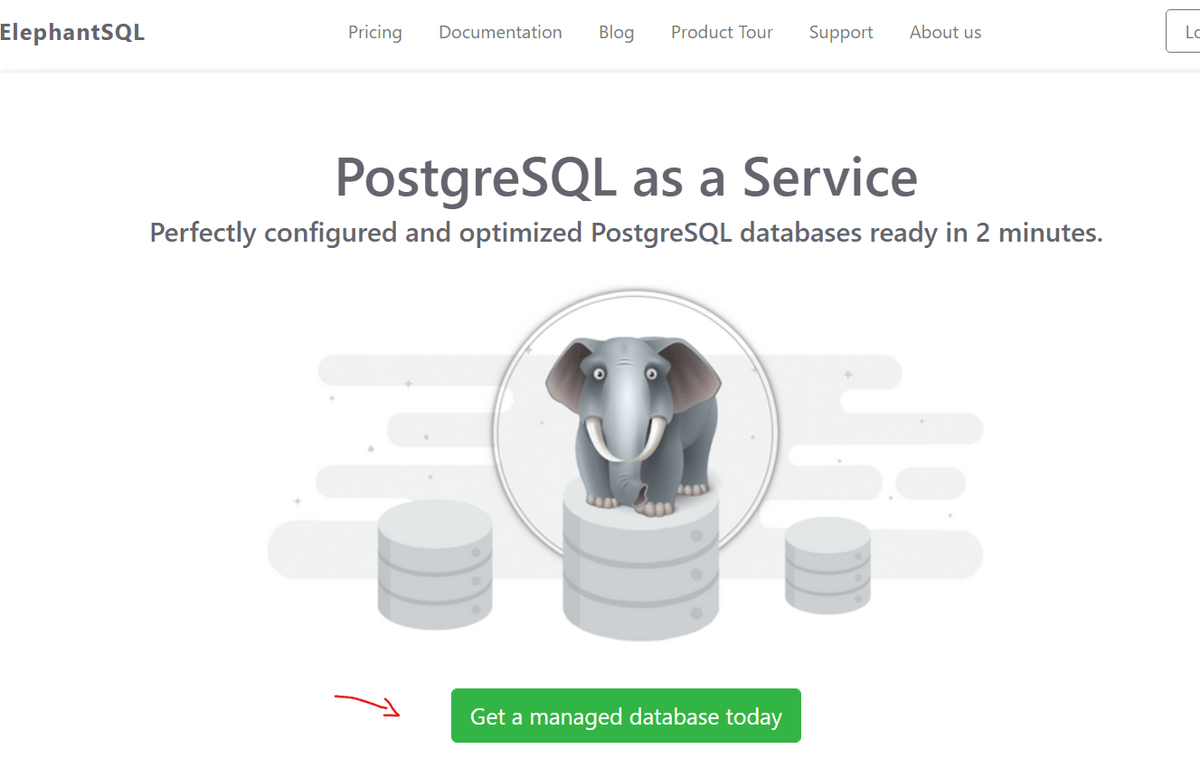 进入官网:ElephantSQL ↗,点击位于页面中央的 Get a managed database today