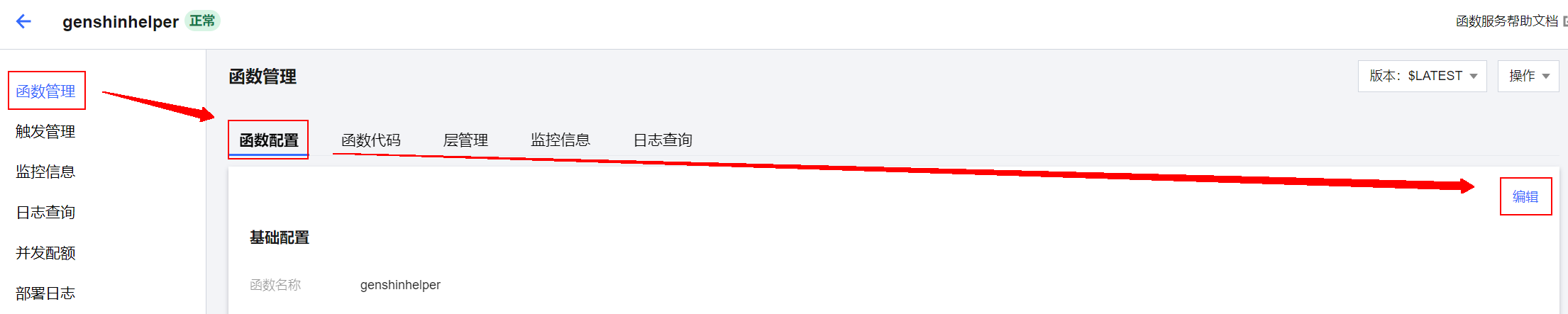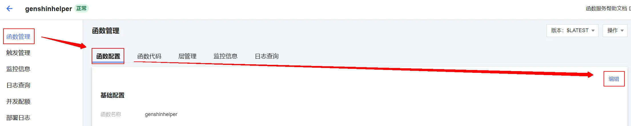 前往genshinhelper—>函数管理—>函数配置—>编辑